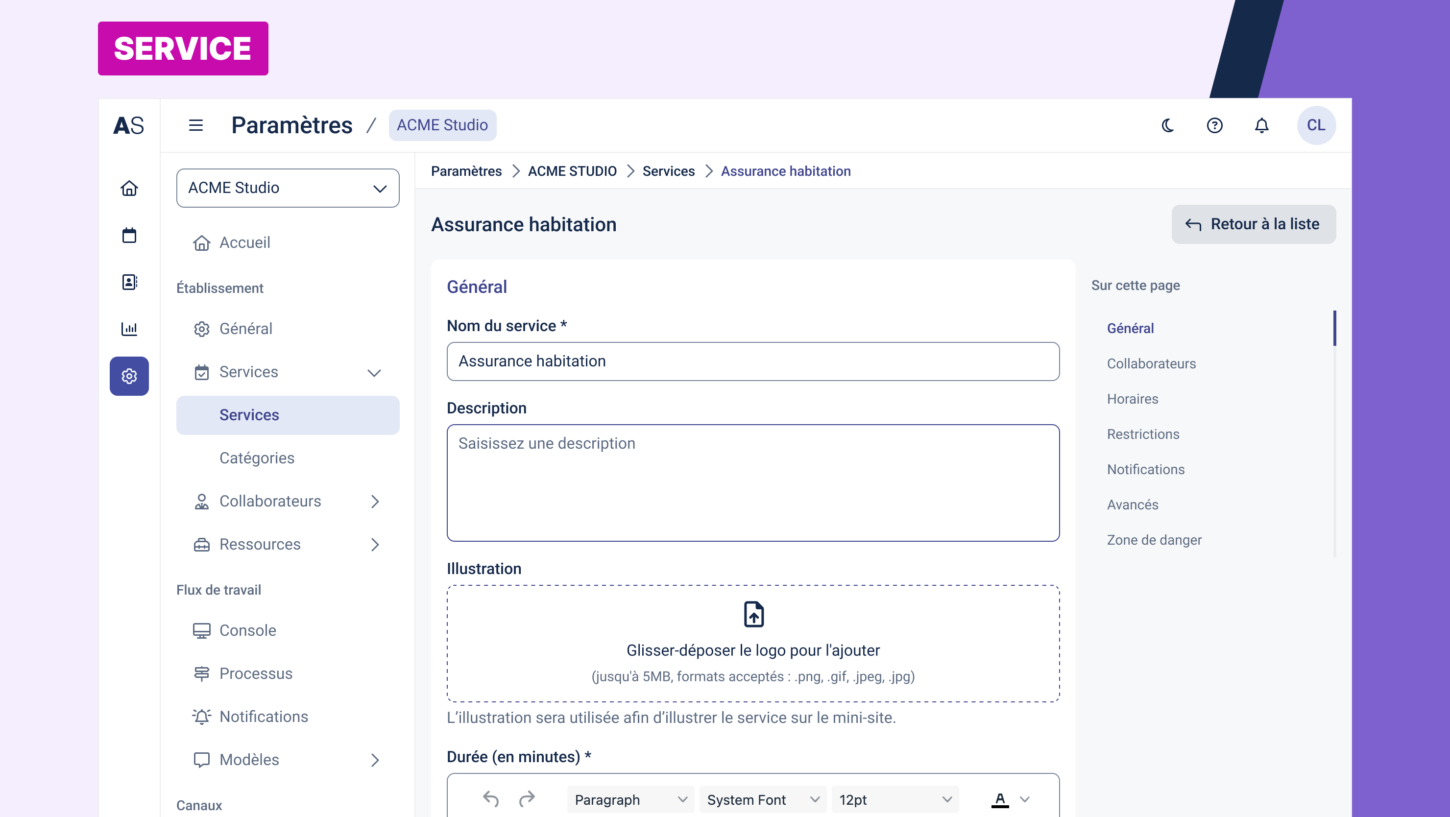 - Activez si le service a des plages horaires différentes des collaborateurs