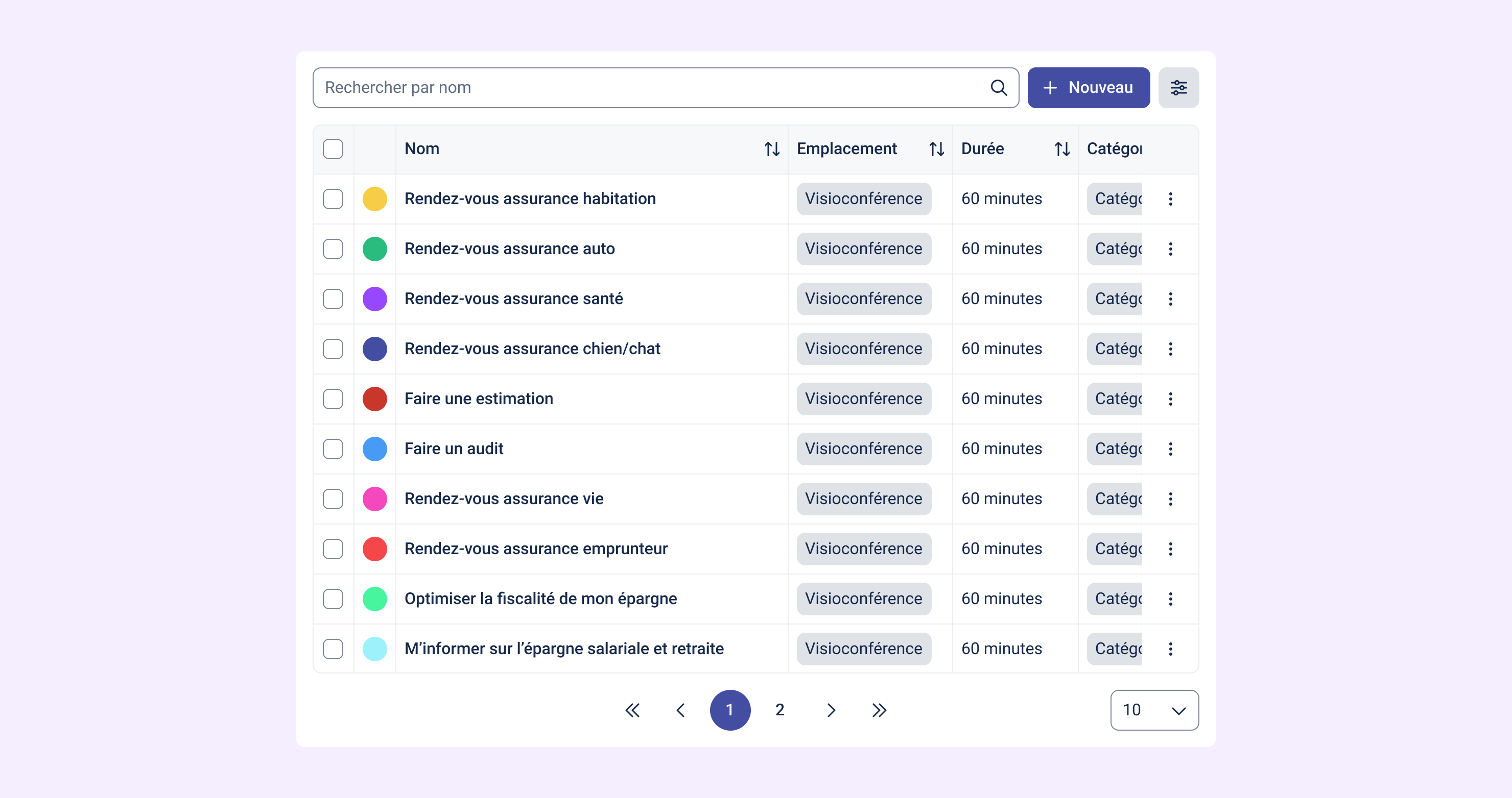 - Emplacement (ex. : visioconférence, agence, etc.)